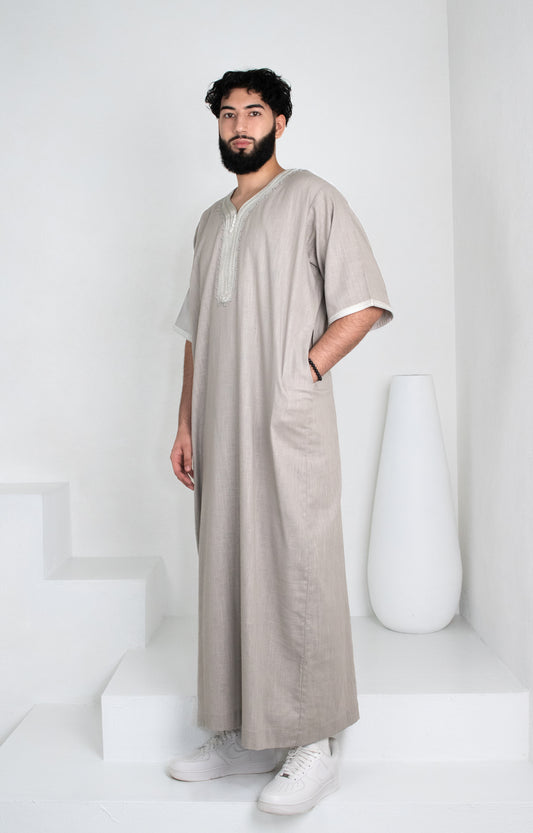 - 30% OFFPremium Linen Moroccan Thobe: Stone Grey